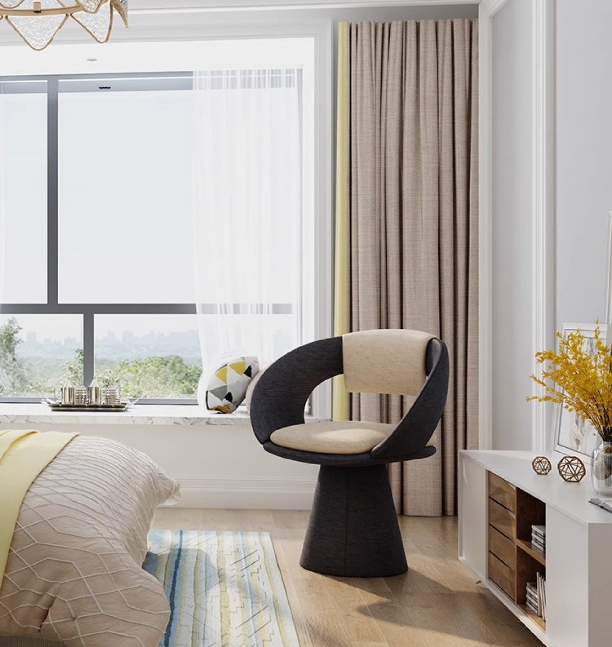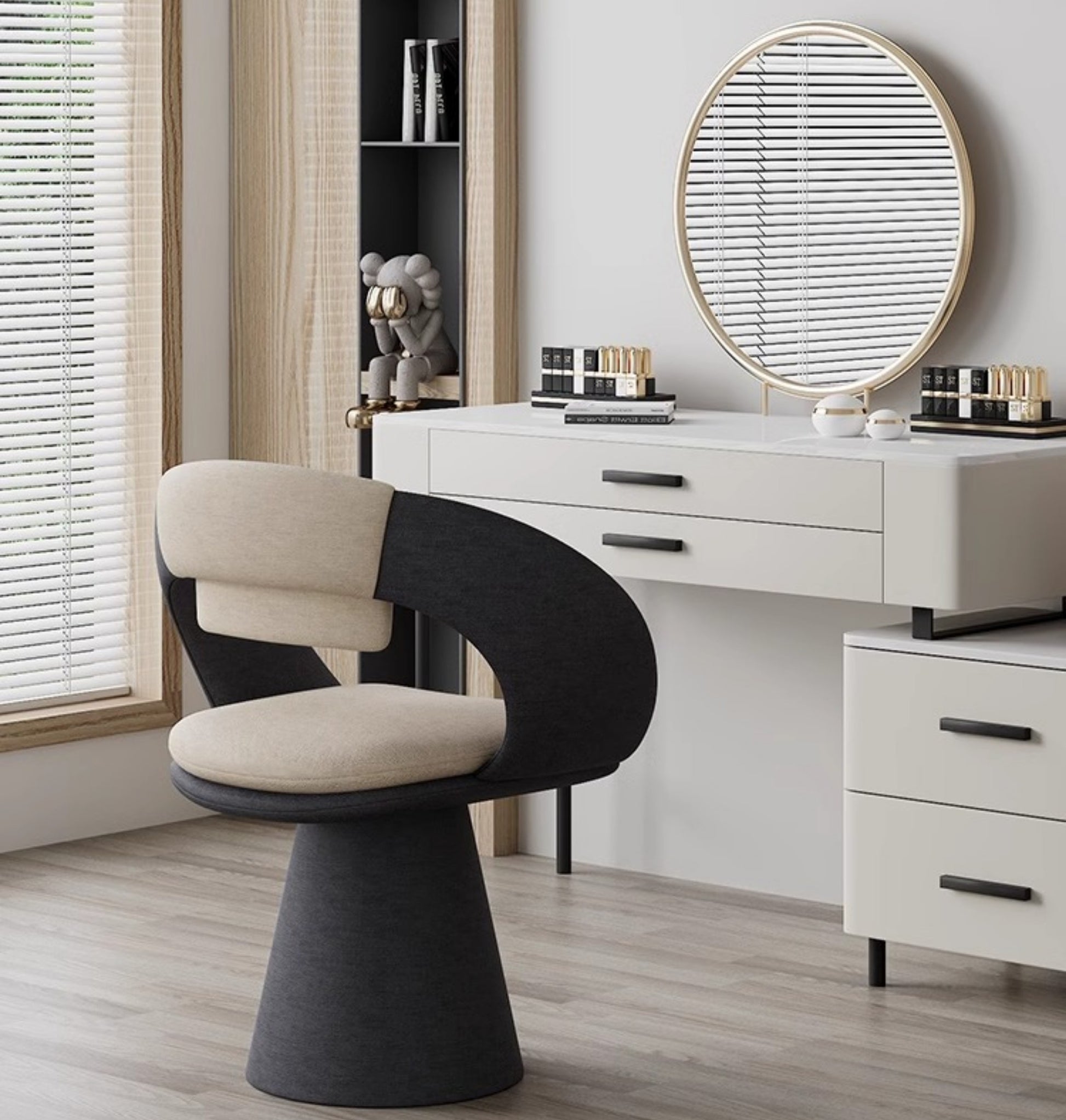 Modern Designer Swivel Chair with Circular Backrest, Contemporary Vanity Chair for Bedroom & Dining Room