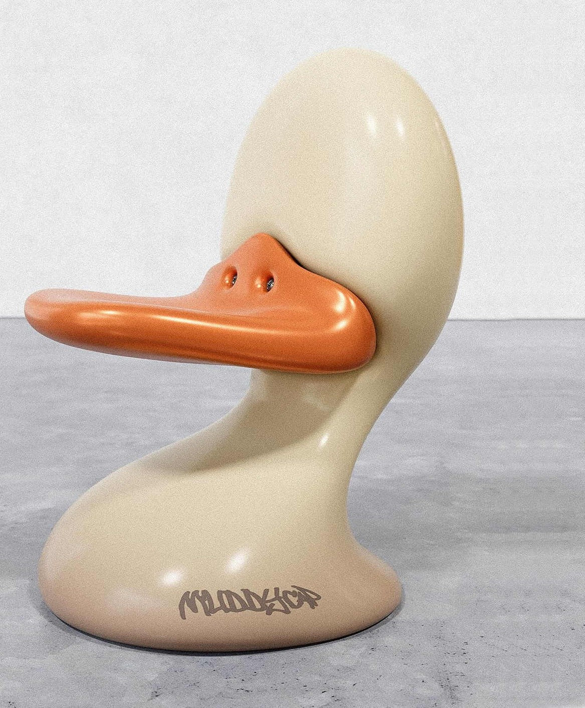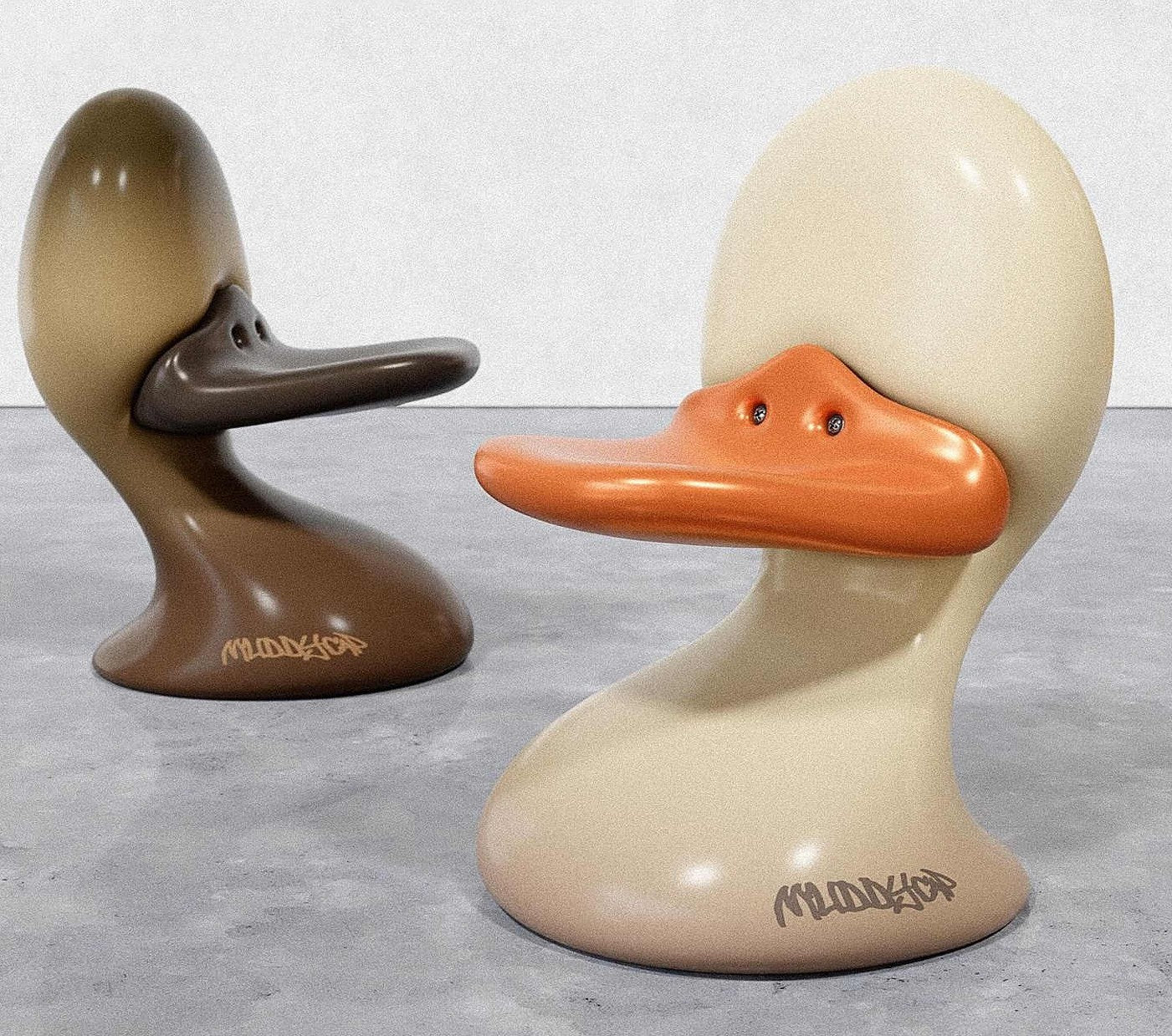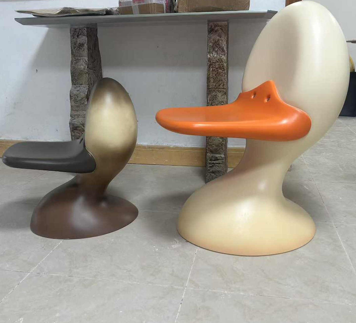 Unique Duck Shape Design: Charming sculptural chair inspired by adorable duck silhouette, featuring realistic proportions and whimsical character that brings joy to any space.