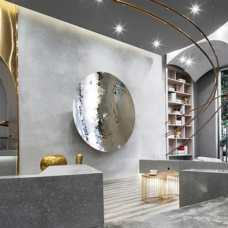 Durable, corrosion-resistant, and highly reflective metal art—perfect for modern living rooms, offices, lobbies, and restaurants.