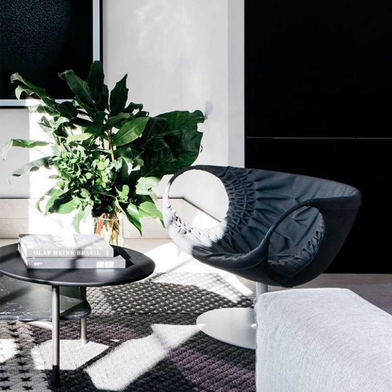 The ergonomic cocoon design creates intimate seating experience perfect for relaxation while the compact 80x71x73cm proportions fit beautifully in various interior settings. The versatile black finish coordinates effortlessly with contemporary and transitional décor schemes.
