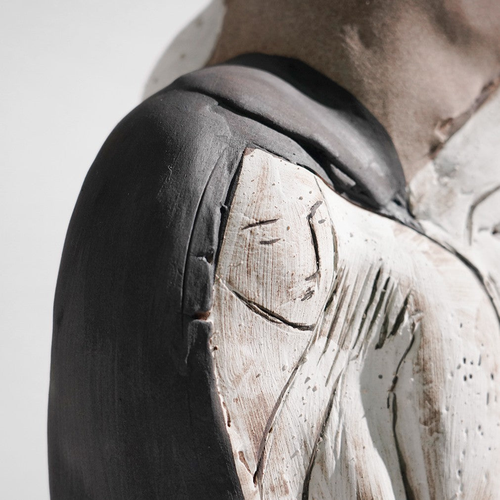 This Modern Handcrafted Ceramic Vase Style, transforms sculptural form into dramatic home decor. Its flowing curves and carved nude motif evoke a sense of poetic sensuality and dynamic artistry, highlighted by layered hand-applied engobe and oxides.