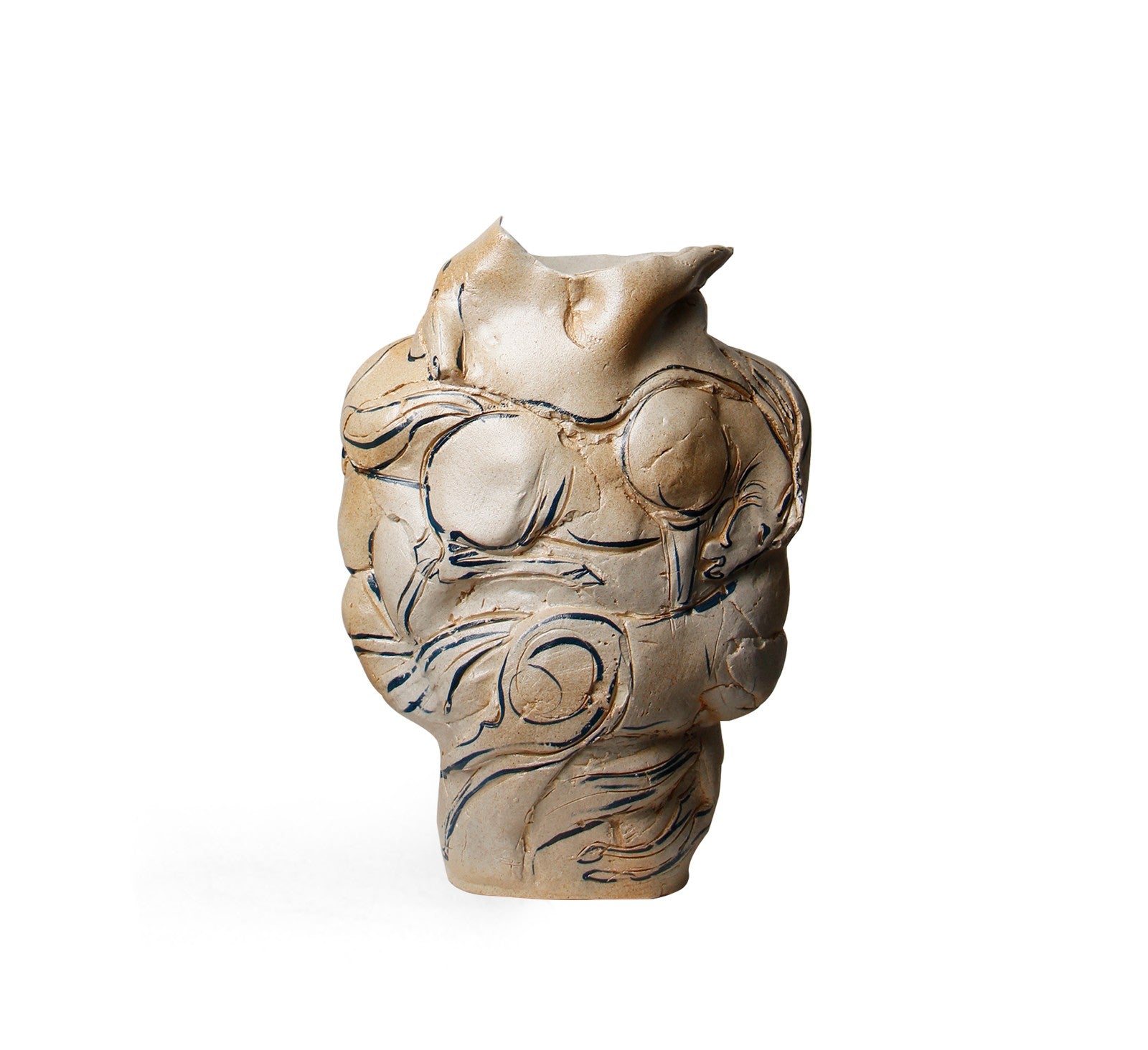One-of-a-kind handcrafted ceramic vase with abstract sculptural lines, reminiscent of flowing contemporary ink art.
