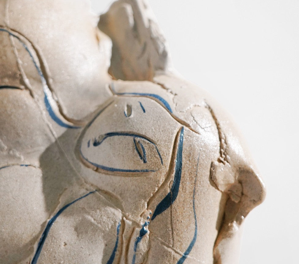 Neutral cream glaze with dynamic carved surfaces adds sophisticated textural interest to artistic, modern, or wabi-sabi interiors.