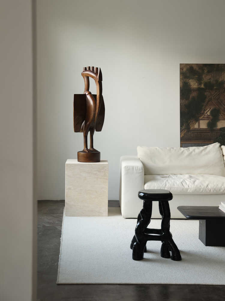 Handcrafted resin accent side table with a bold black sculptural design for modern interiors.