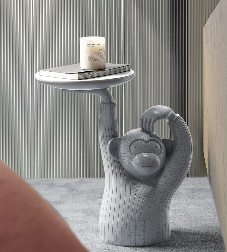 Monkey Tray Side Table – Creative Sculptural Floor Accent, Modern Living Room Decorative Stand with Serving Plate