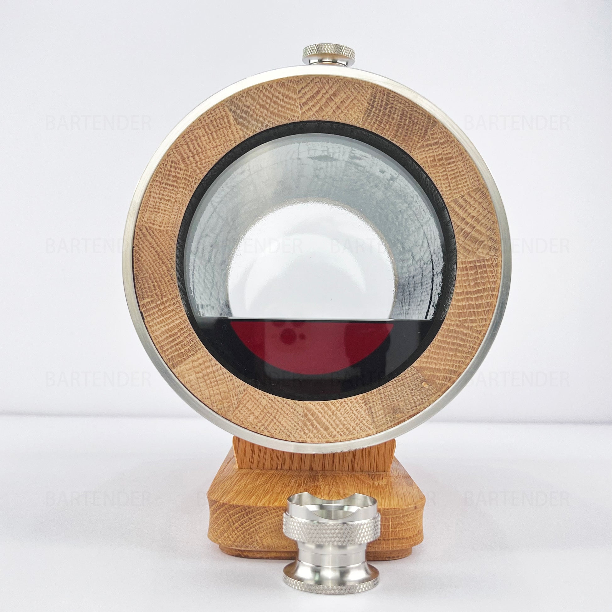Constructed with stainless steel rings for durability and aesthetics, ideal for home bars, cocktail enthusiasts, and small batch spirit aging.