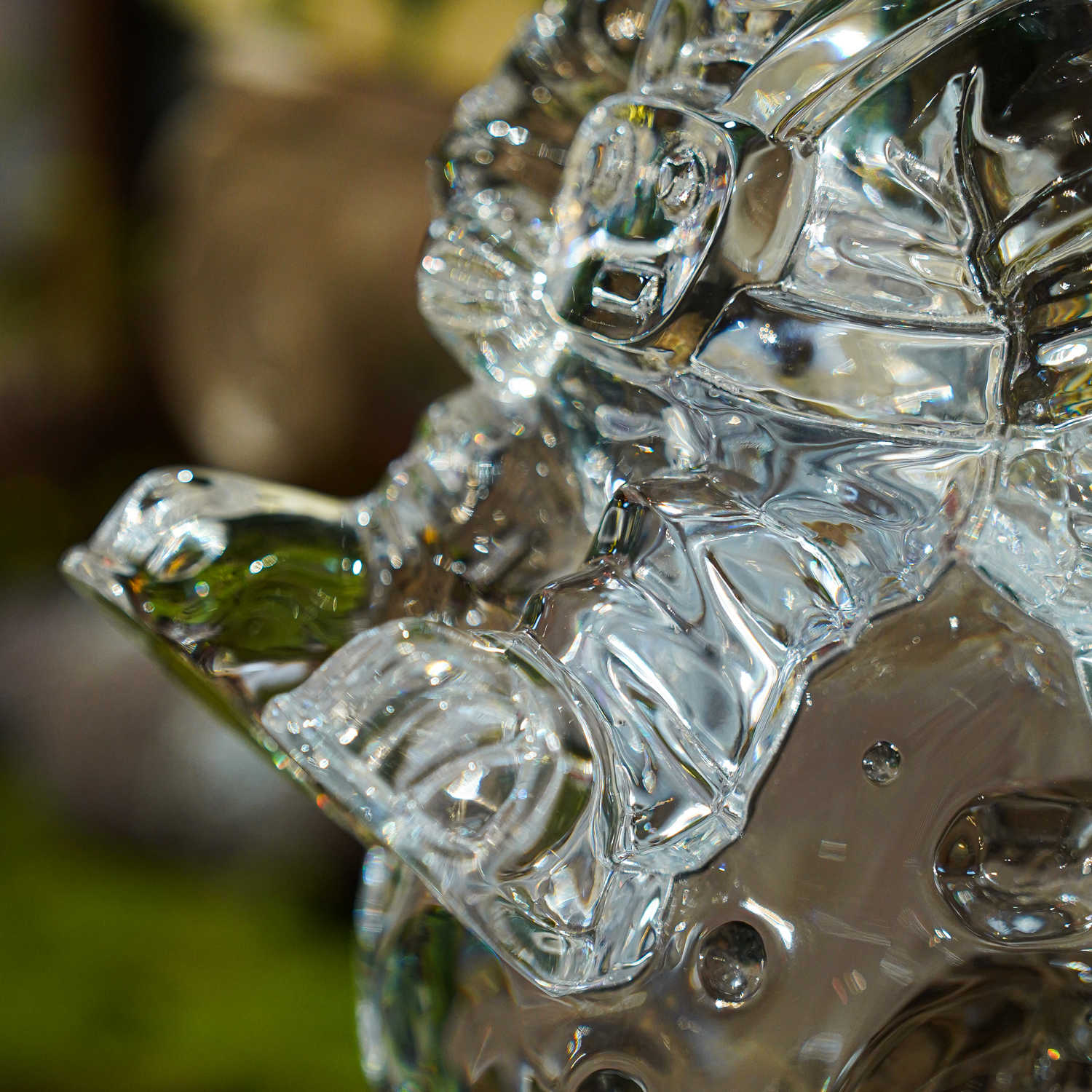 Light-refracting artistry creates stunning visual effects as crystal surfaces catch and disperse light throughout the sculpture.