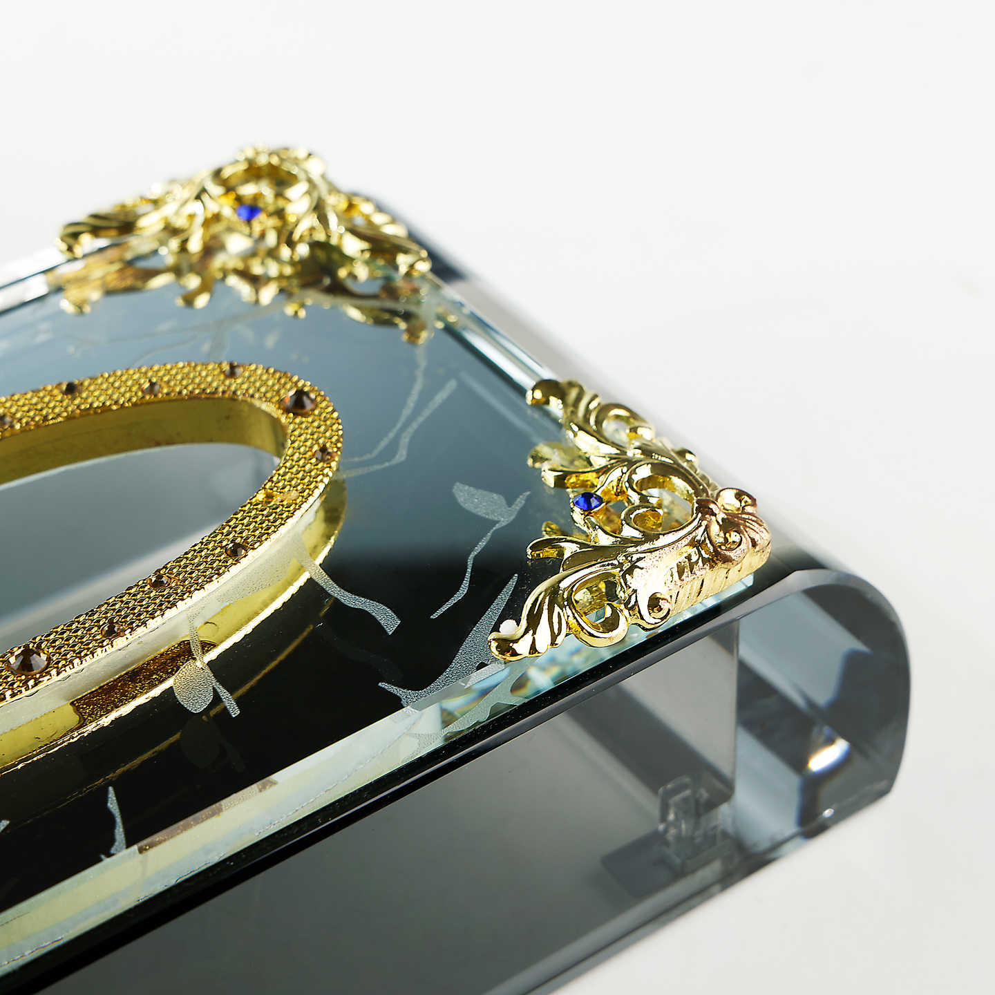 Premium Crystal Glass Magnetic Tissue Box, Luxury Ornate Gold-Trimmed Napkin Dispenser with Magnetic Closure, Office Living Room Decor Accessory