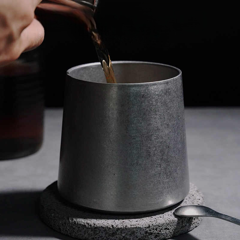 Premium Stainless Steel Whiskey Tumbler 380ml – Titanium Coated, Double-Wall Vintage Rock Glass for Cocktails, Beer & Water, Brushed Metal