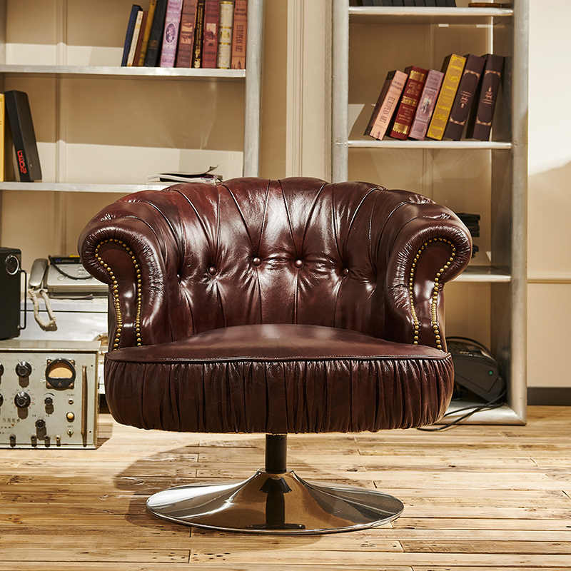 Materials: Genuine Top-Grain Leather + Polished Chrome Swivel Base