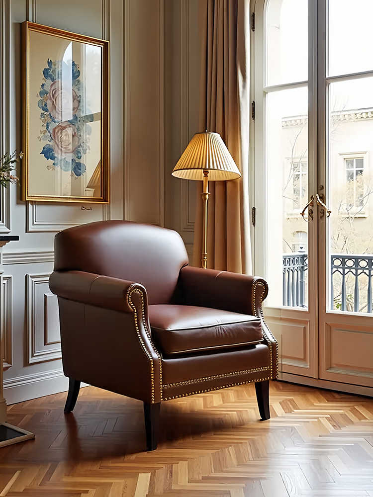 Timeless brown leather patina ages beautifully with use, adding character and vintage charm to any decor scheme.