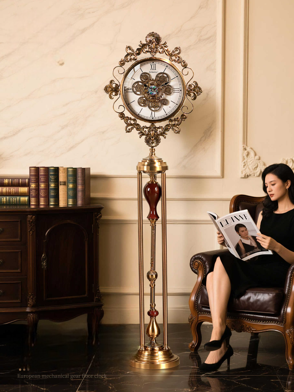 This retro floor clock brings together high-end craftsmanship, ornate aesthetics, and modern mechanical design. The elevated gear dial and baroque embellishments make it both a practical timepiece and a show-stopping work of art for refined interiors. With its stately presence and superb detailing, this grandfather clock is a top choice for those pursuing true luxury and lasting visual impact in home decor.