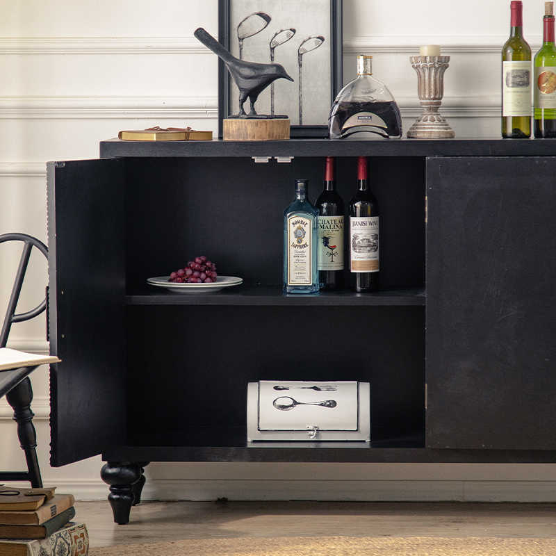 Constructed from premium solid wood using time-honored techniques, this sideboard delivers both artistic beauty and functional storage for dining rooms, entryways, living spaces, or commercial settings. The classic turned legs provide stability while maintaining visual lightness.