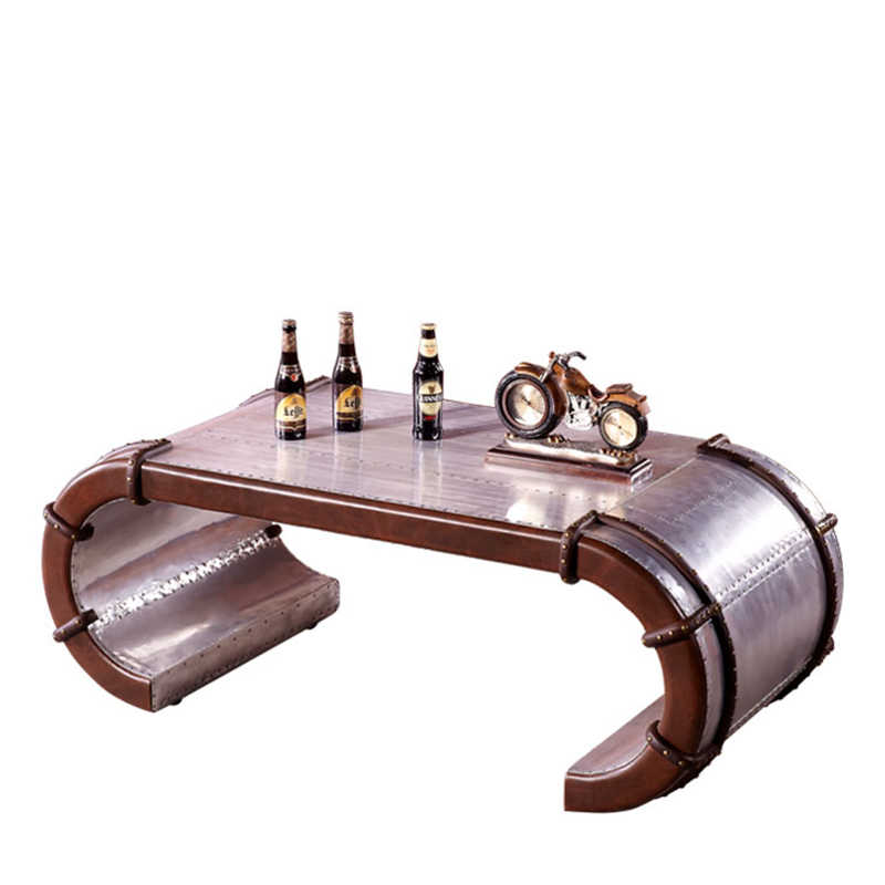 Elevate entertainment spaces with this Vintage Industrial Designer Metal Coffee Table, engineered for the sophisticated demands of KTV lounges, nightclubs, and private bar rooms. The distinctive curved aluminum frame showcases polished metal craftsmanship, creating a striking visual centerpiece that complements rich leather seating and industrial décor themes. Measuring 26.8 inches deep by 54.3 inches wide and 20.5 inches high, the generous proportions accommodate beverages, entertainment accessories, and decorative elements while maintaining an open, airy feel. The robust tempered glass top resists scratches and stains from frequent use, while the innovative C-shaped base design allows for easy movement and flexible seating arrangements around the table. Ideal for upscale bars, entertainment venues, private clubs, or luxury residential spaces seeking a bold industrial aesthetic with commercial durability and timeless designer appeal.