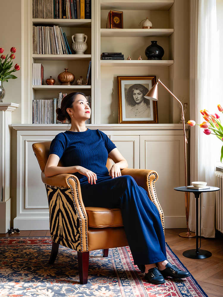 Vintage Leather Tiger Chair – Retro Cigar Single Armchair for Living Room, Study, Balcony