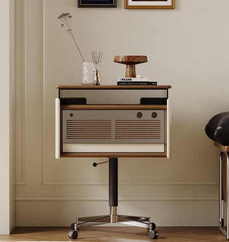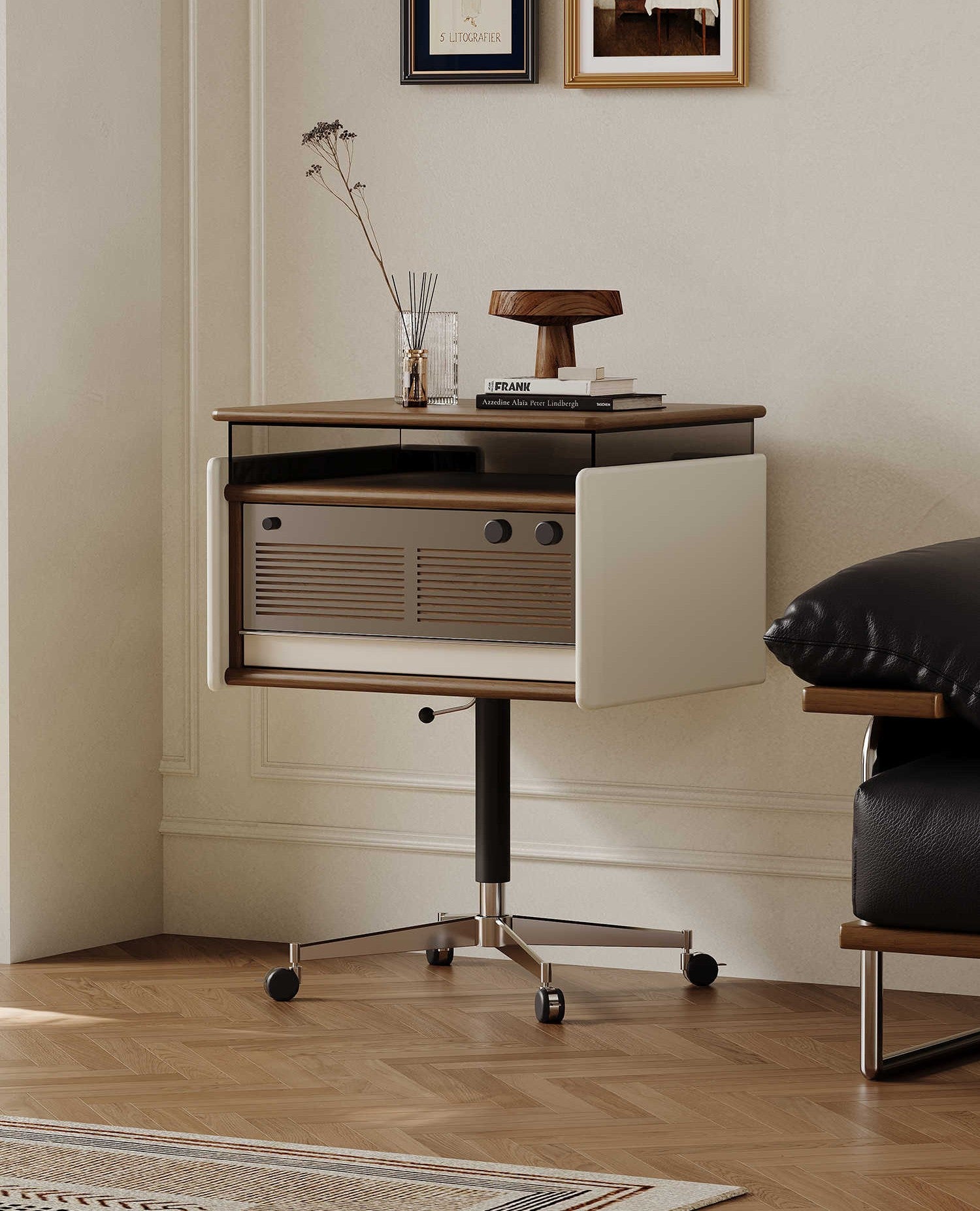 Vintage Rotating Adjustable Side Table on Wheels, TIGO Retro Mobile Nightstand Bedside Cabinet with Storage, Mid-Century Sofa End Table