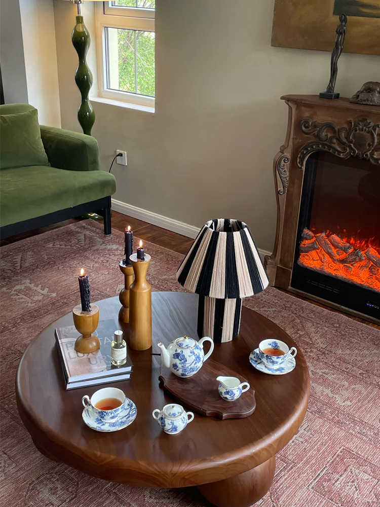 Elevate your space with this deep walnut solid wood coffee table, combining retro design and Asian inspiration. The thick round top (100cm) sits atop playful yet sturdy wooden spheres, creating a signature silhouette that is both functional and artistic. Its hand-finished edges and premium wood ensure comfort and lasting style, perfect for living rooms seeking a timeless statement piece or multi-purpose family table.